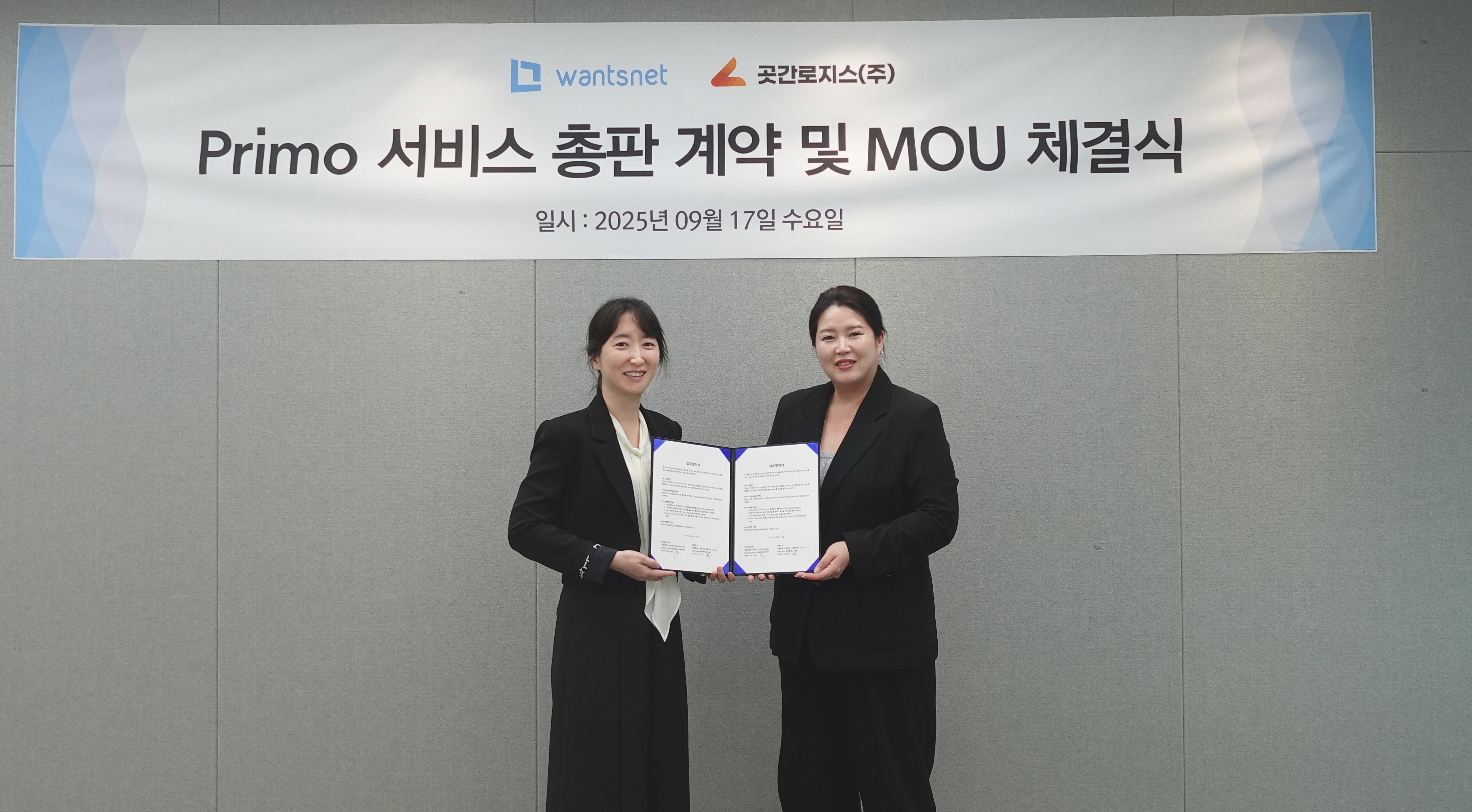 AI 인프라 전문기업 원츠넷(대표 이선혜)이 AI 기반 B2B 화물 운송 중개 플랫폼 ‘프리모(primo)’ 운영하는 곳간로지스(대표 김자영)와 업무 협약(MOU)을 체결했다.